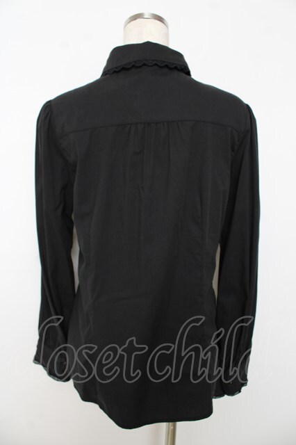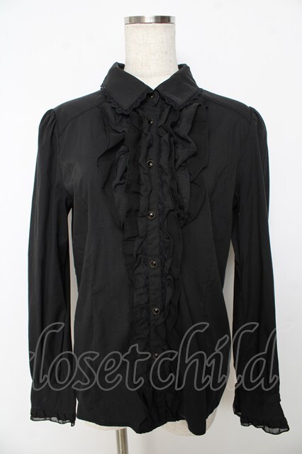 axes femme / リボンタイ付きフリルブラウス L 黒 Y-25-10-16-092-AX-TO-SZ-ZY