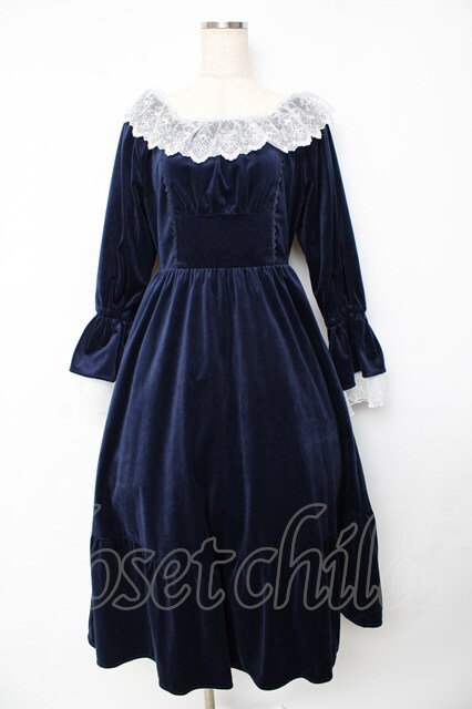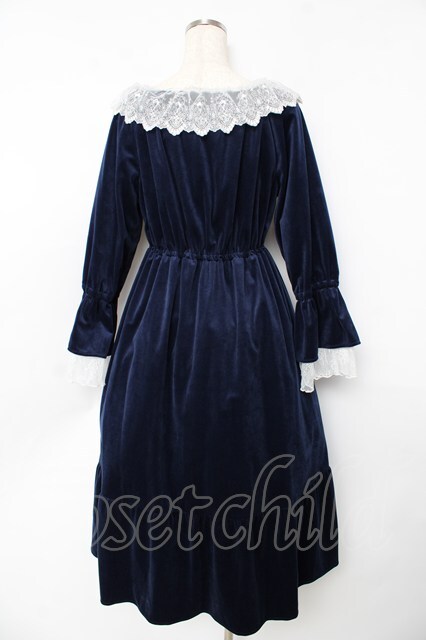 axes femme / パゴタ袖ベロアワンピース F 紺 Y-25-10-16-131-AX-OP-SZ-ZY