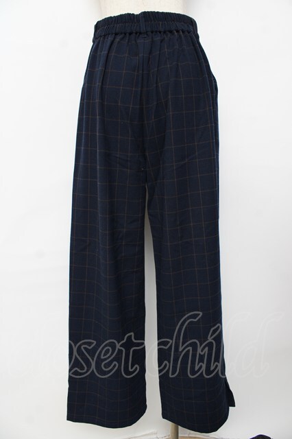 axes femme / 裾釦起毛チェックワイドパンツ M 紺 Y-25-10-16-153-AX-PA-SZ-ZY