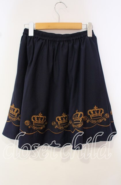 axes femme POETIQUE / 王冠刺しゅうスカート M ネイビー O-25-10-14-103-AX-SK-OW-OS