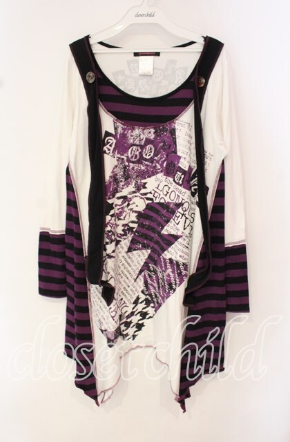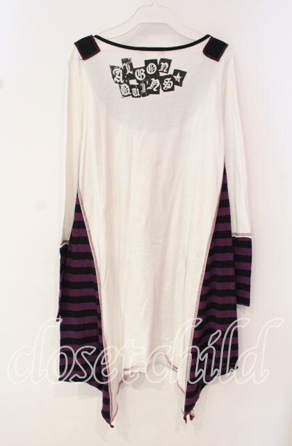 ALGONQUINS / 継ぎ接ぎロングカットソー ホワイト×パープル O-25-10-14-153-AL-TO-IG-OS