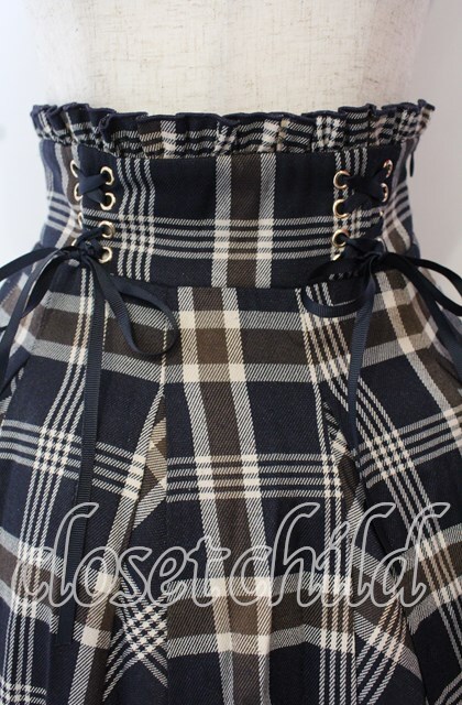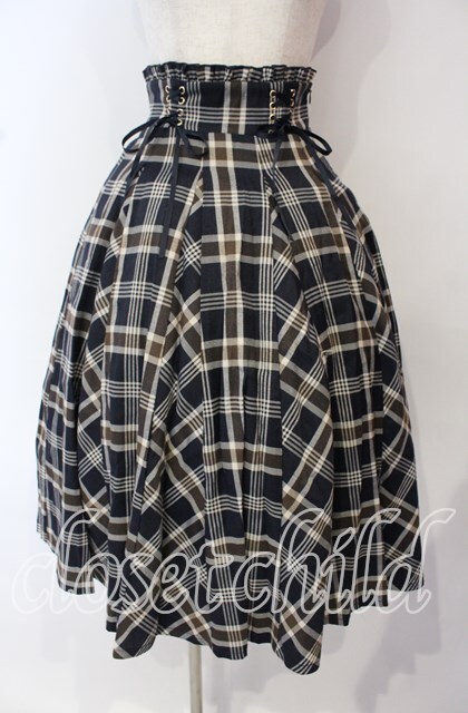 Amavel / Wレースアップチェック柄スカート ネイビー O-25-10-14-072-CA-SK-IG-OS