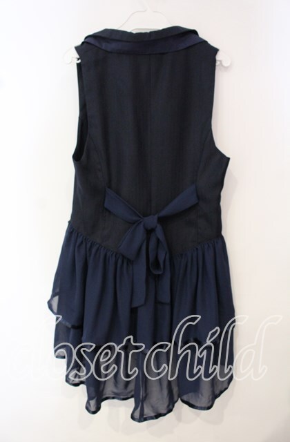 axes femme POETIQUE / ショールカラーロングベスト M ネイビー O-25-10-14-130-AX-TO-OW-OS