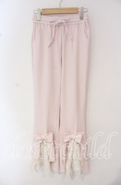 Bobon21 / 裾レースクラシカルガーリーフレアパンツ ピンク O-25-10-14-070-EL-PA-OW-OS