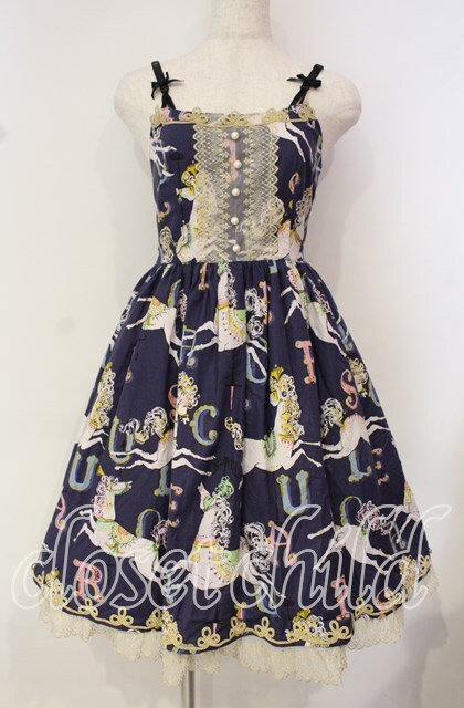 Belette / サーカス柄ジャンパースカート ネイビー O-25-10-14-096-LO-OP-IG-OS