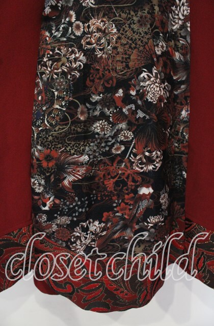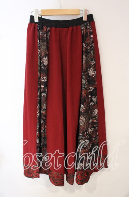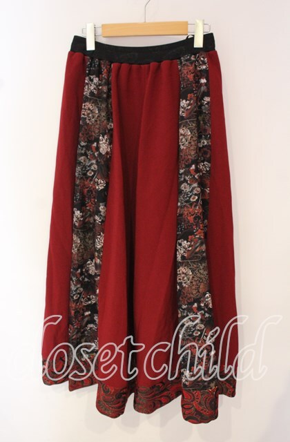 Qutie Frash / 和柄フレアロングスカート レッド O-25-10-14-075-QU-SK-OW-OS [2100080000060442-O-25-10-14-075-QU-SK-OW-OS]