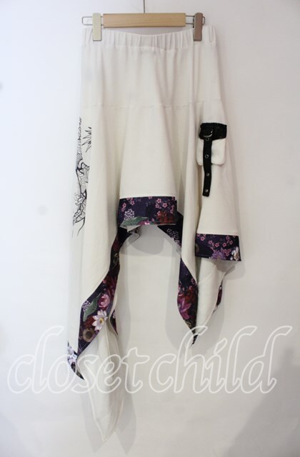 Qutie Frash / 和柄ランダムスカート ホワイト×パープル O-25-10-14-079-QU-SK-IG-OS