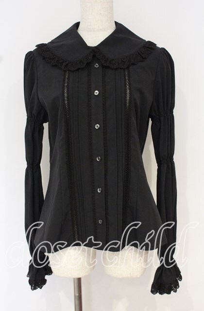 Moi-meme-Moitie / シャーリングスリーブブラウス 9号 ブラック O-25-10-14-020-MO-BL-IG-OS