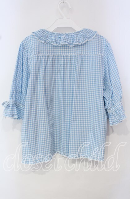 PINK HOUSE / はしごレース&サテンリボン使いローンブラウス サックス O-25-10-14-117-LO-BL-OW-OS
