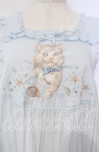 PINK HOUSE / さざ波とねこ刺繍ローンタブリエ ミズイロ O-25-10-14-119-LO-TO-OW-OS [2100080000060988-O-25-10-14-119-LO-TO-OW-OS]