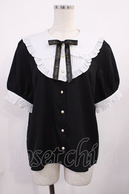 Amavel / メッセージサテンリボンフリルブラウス Free ブラック H-25-10-19-029-CA-BL-NS-ZH