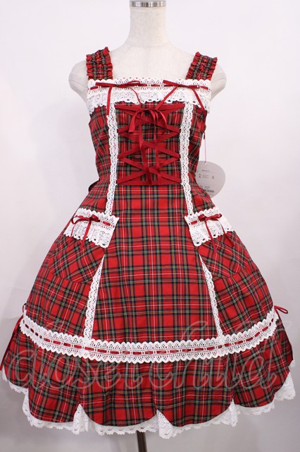 BABY,THE STARS SHINE BRIGHT / 裾スカラップタータンチェックジャンパースカートセット Free エンジ H-25-10-19-002-BA-OP-NS-ZH