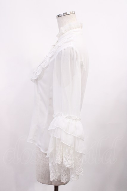 Innocent World / シフォンとレースの姫袖ブラウス M オフ H-25-10-17-029-IW-BL-NS-ZH