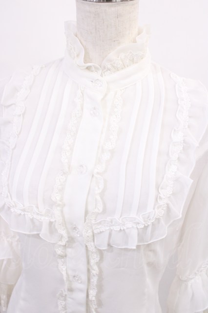 Innocent World / シフォンとレースの姫袖ブラウス M オフ H-25-10-17-029-IW-BL-NS-ZH [2100030000075295-H-25-10-17-029-IW-BL-NS-ZH]