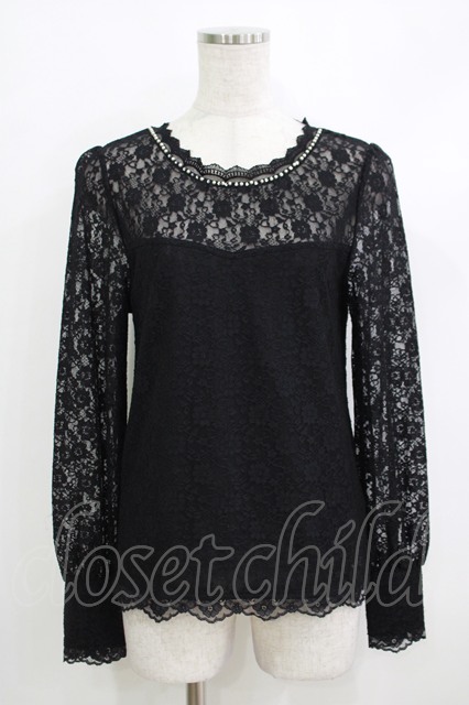 axes femme / 総レースビスチェ切替プルオーバー M ブラック H-25-10-19-1045-AX-TO-NS-ZH
