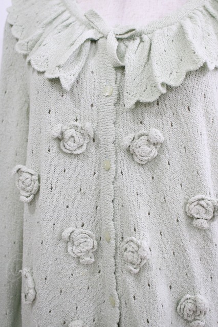 PINK HOUSE / ブロッサムローズモチーフ付きニットカーディガン ミント H-25-10-19-1048-LO-TO-NS-ZH