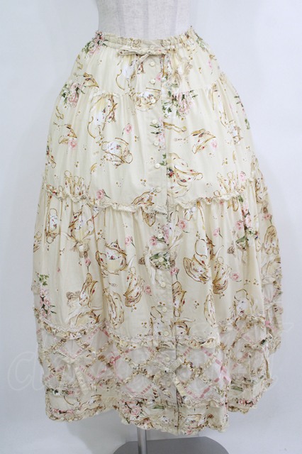 PINK HOUSE / ティータイム柄ロングスカート 生成り H-25-10-19-1011-LO-SK-NS-ZH
