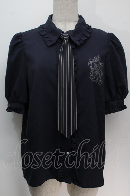 NOEMIE / ストライプネクタイ付きゴシックブラウス 紺 S-25-10-14-016-LO-BL-HR-ZS [2100020000032729-S-25-10-14-016-LO-BL-HR-ZS]