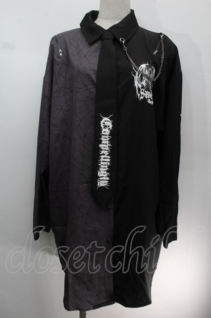 NOEMIE / スパイダー配色ユニセックスシャツ 黒xグレー S-25-10-14-024-LO-BL-HR-ZS [2100020000032728-S-25-10-14-024-LO-BL-HR-ZS]