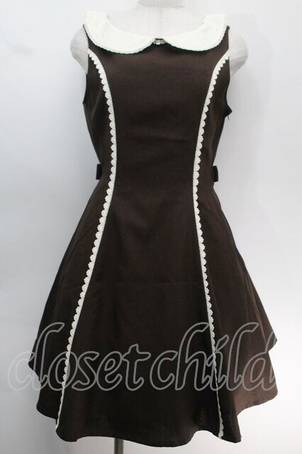 Innocent World / 付け衿付バッスルジャンパースカート ブラウン S-25-10-14-031-IW-OP-HR-ZS