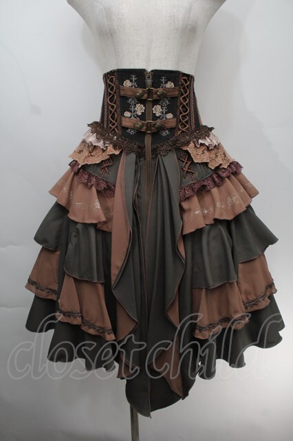 Ozz oneste / ティアードスカート カーキxベージュ S-25-10-14-050-OO-TO-AS-ZS [2100020000032354-S-25-10-14-050-OO-TO-AS-ZS]