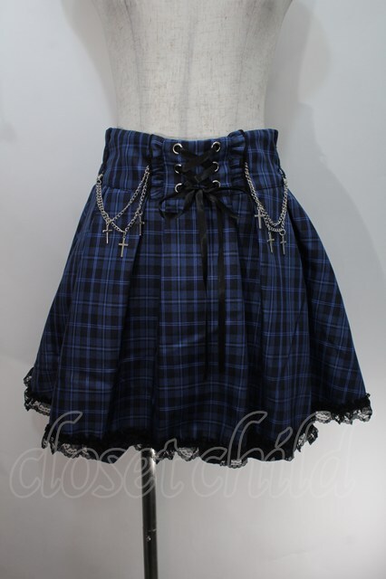 NOEMIE / チェーン付きチェックスカート ブルー S-25-10-14-052-LO-SK-HR-ZS