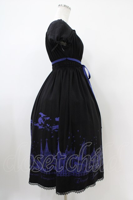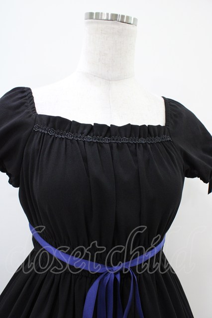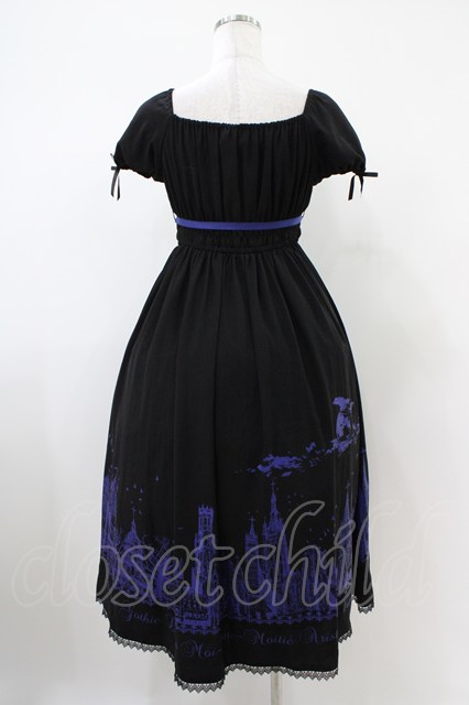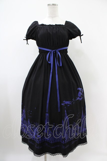 Moi-meme-Moitie / サイレントムーンワンピース(ミディアム丈) ブラック×ブルー H-25-10-20-1038-MO-OP-KB-ZH