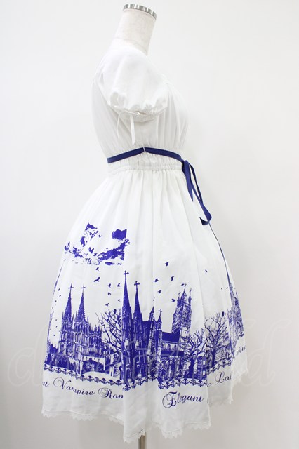 Moi-meme-Moitie / サイレントムーンワンピース(ミニ丈) white x blue H-25-10-20-1037-MO-OP-KB-ZH [2100030000075454-H-25-10-20-1037-MO-OP-KB-ZH]