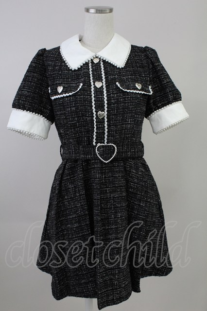 DearMyLove / サマーツイードハートパールワンピース 黒X白 T-25-10-16-005-EL-OP-SA-ZT