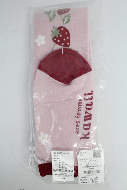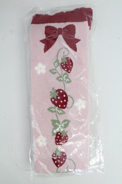 axes femme kawaii / いちご柄オーバーニー ピンク T-25-10-16-015-AX-ZA-SA-ZT