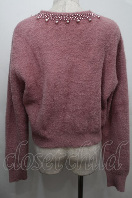 an another angelus / パールチョーカー風シャギーニットカーディガン ピンク S-25-10-15-018-CA-TO-AS-ZS
