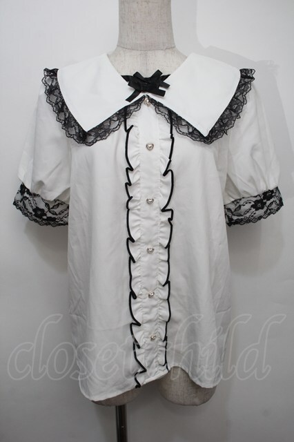 NOEMIE / レースセーラーブラウス 白x黒 S-25-10-15-020-LO-BL-HR-ZS
