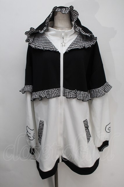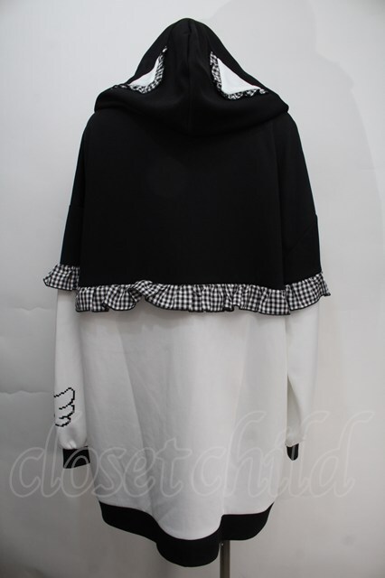 NOEMIE / ギンガムフリルねこ耳ジップジャージパーカー 黒x白 S-25-10-15-029-LO-TO-HR-ZS [2100020000032779-S-25-10-15-029-LO-TO-HR-ZS]