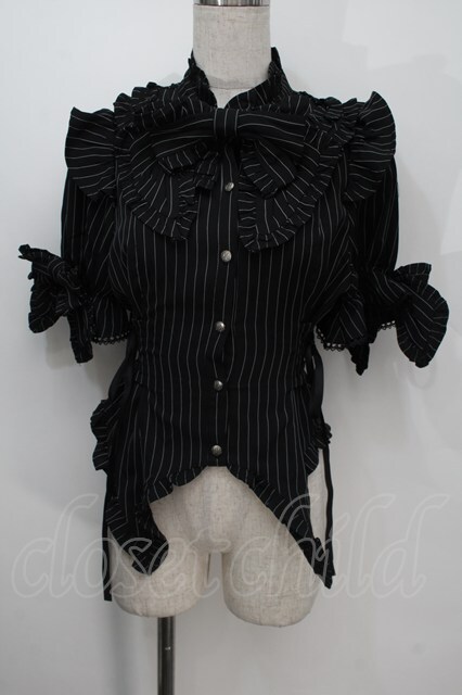 Chalmiere / ストライプリボンブラウス 黒 S-25-10-15-042-LO-BL-HR-ZS [2100020000032877-S-25-10-15-042-LO-BL-HR-ZS]