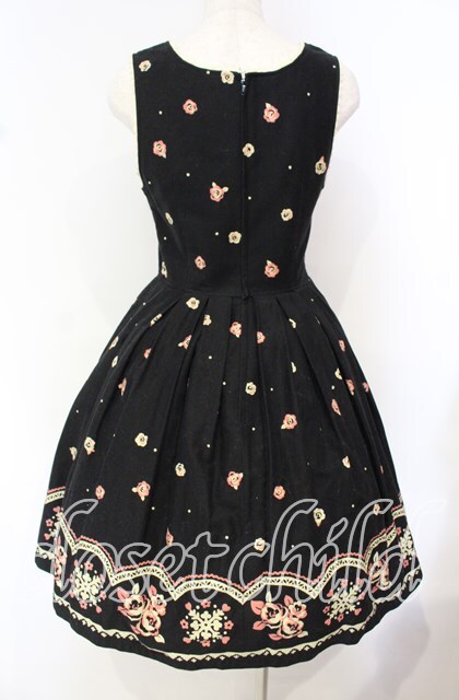 Emily Temple cute / ローズプリントジャンパースカート クロ O-25-10-16-020-ET-OP-IG-OS