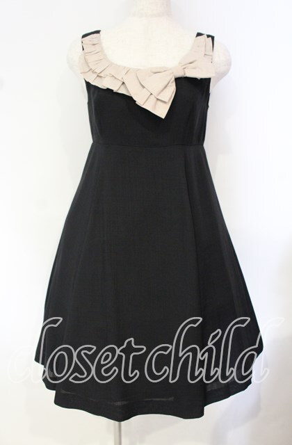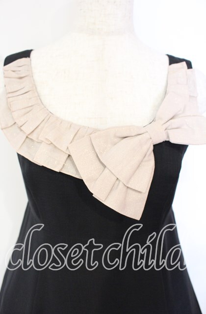 Emily Temple cute / ラメリボンノースリーブワンピース クロ×アイボリー O-25-10-16-033-ET-OP-IG-OS
