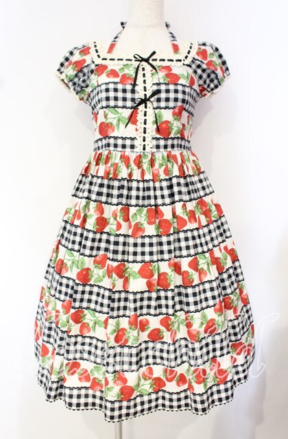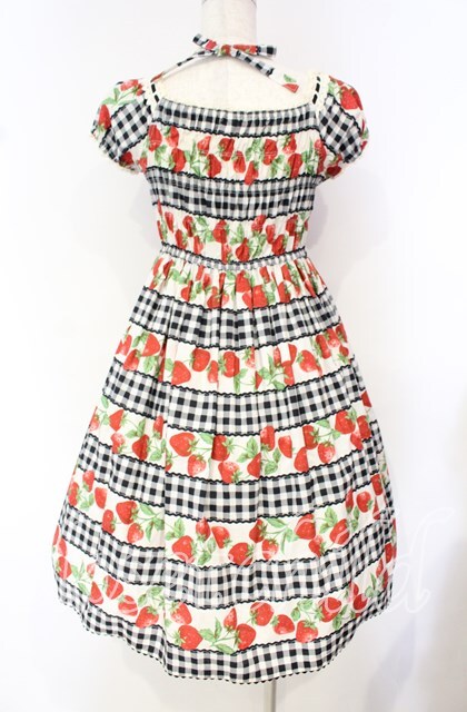 Emily Temple cute / ギンガム苺ワンピース クロ×シロ O-25-10-16-029-ET-OP-IG-OS [2100080000061188-O-25-10-16-029-ET-OP-IG-OS]