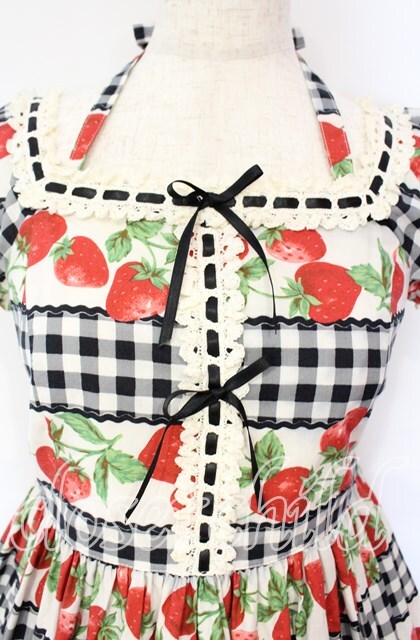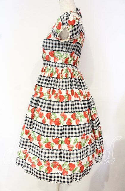 Emily Temple cute / ギンガム苺ワンピース クロ×シロ O-25-10-16-029-ET-OP-IG-OS