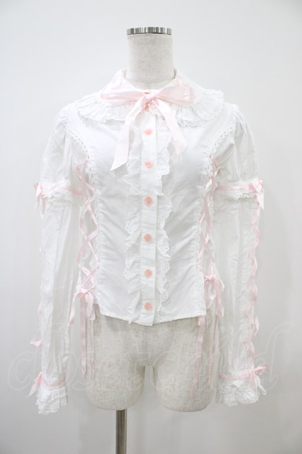Angelic Pretty / 編み上げリボンブラウス Free オフ/ピンク H-25-10-21-049-AP-BL-NS-ZH [2100030000068841-H-25-10-21-049-AP-BL-NS-ZH]