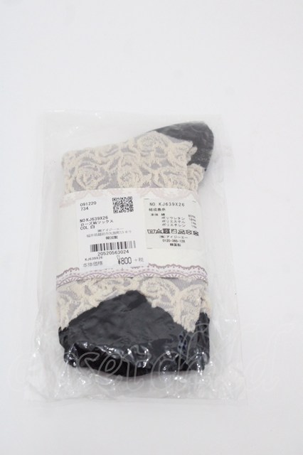 axes femme / ローズ柄ソックス 白X黒 I-25-10-15-113-AX-ZA-SA-ZI [2100060000043636-I-25-10-15-113-AX-ZA-SA-ZI]