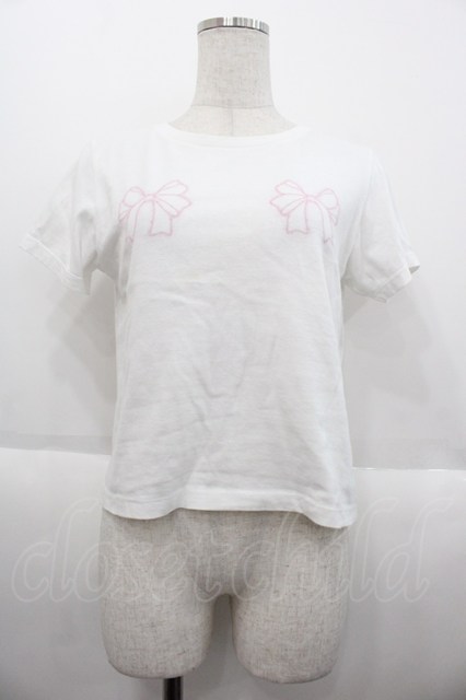 Bubbles / パウダーリボンTEEシャツ ホワイト I-25-10-15-017-CA-TS-SA-ZI