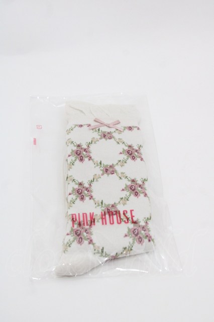 PINK HOUSE / 薔薇格子柄ソックス 白 I-25-10-15-115-LO-ZA-SA-ZI [2100060000043567-I-25-10-15-115-LO-ZA-SA-ZI]