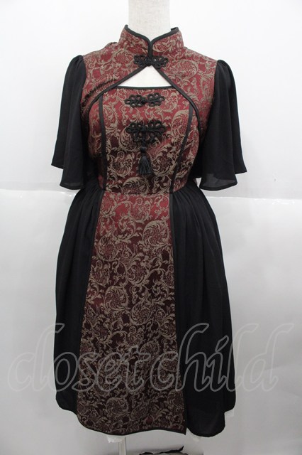 axes femme kawaii / メイリンワンピース ボルドーX黒 I-25-10-15-071-AX-OP-SA-ZI