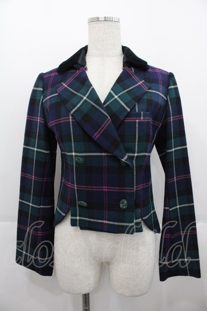 Jane Marple / タータンチェックジャケット グリーンXネイビーXピンク I-25-10-15-034-JM-JA-SA-ZI