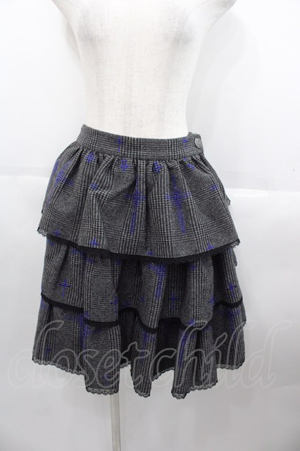 Moi-meme-Moitie / グレンチェック十字架3段ティアードスカート グレー I-25-10-15-088-MO-SK-HR-ZI
