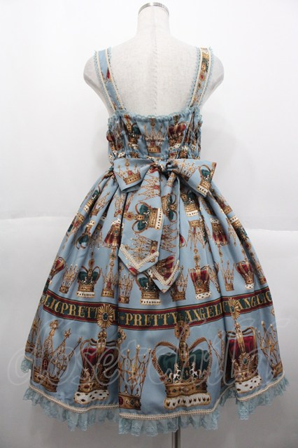 Angelic Pretty / British Crownシャーリングジャンパースカート ブルー I-25-10-15-040-AP-OP-SA-ZI