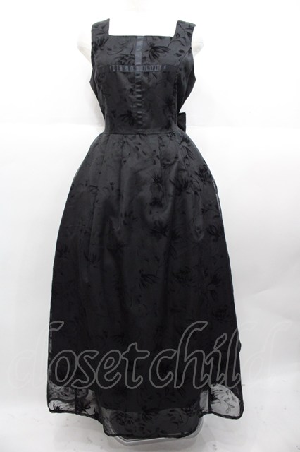 Moi-meme-Moitie / 花柄フロッキーロングジャンパースカート 9号 黒 I-25-10-15-074-MO-OP-HR-ZI