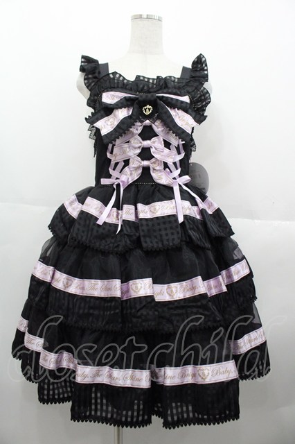 BABY,THE STARS SHINE BRIGHT / Sweet Best Wishesジャンパースカート&リボンクリップセット 黒Xラベンダー I-25-10-15-048-BA-OP-SA-ZI