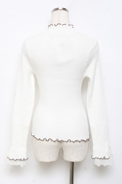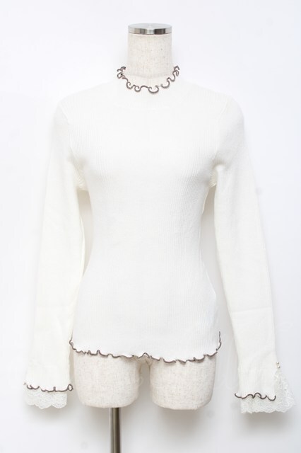 axes femme / 袖レースメローニットプルオーバー F 白 Y-25-10-18-077-AX-TO-SZ-ZY