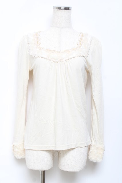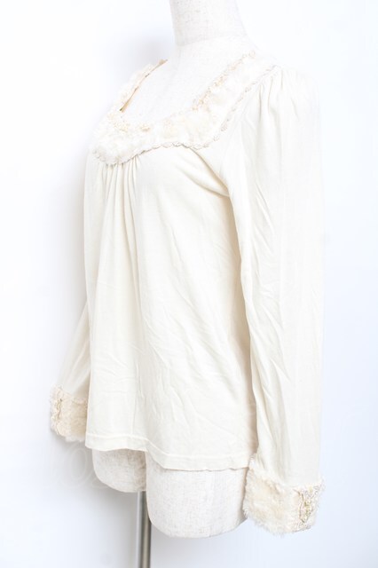 axes femme / ファー配色カットソー M 生成り Y-25-10-18-085-AX-TO-SZ-ZY